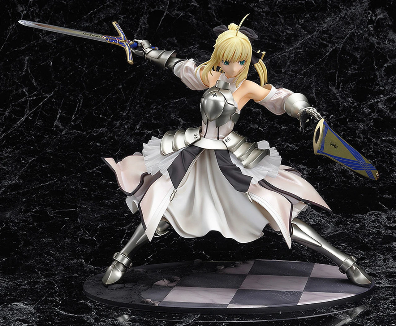 The long-awaited rerelease of the 1/7th scale figure of Saber’s alternate form, Saber Lily! Posed as if preforming her ultimate move “”Distant Avalon”” slashing through the air with her sword, Caliburn. Her other noble phantasm, the sword Excalibur has also been included and can be switched out for a difference appearance whenever you wish!